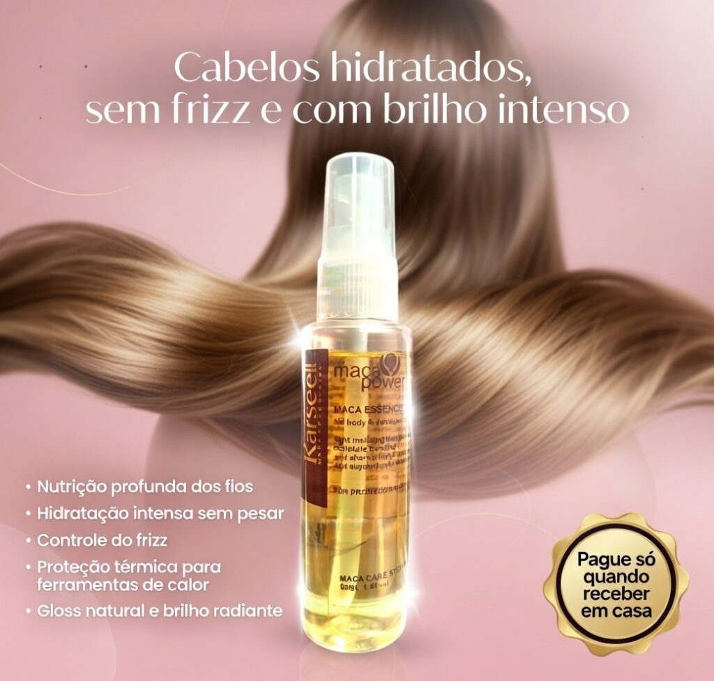 - Cabelos sem vida → fios hidratados e brilhantes