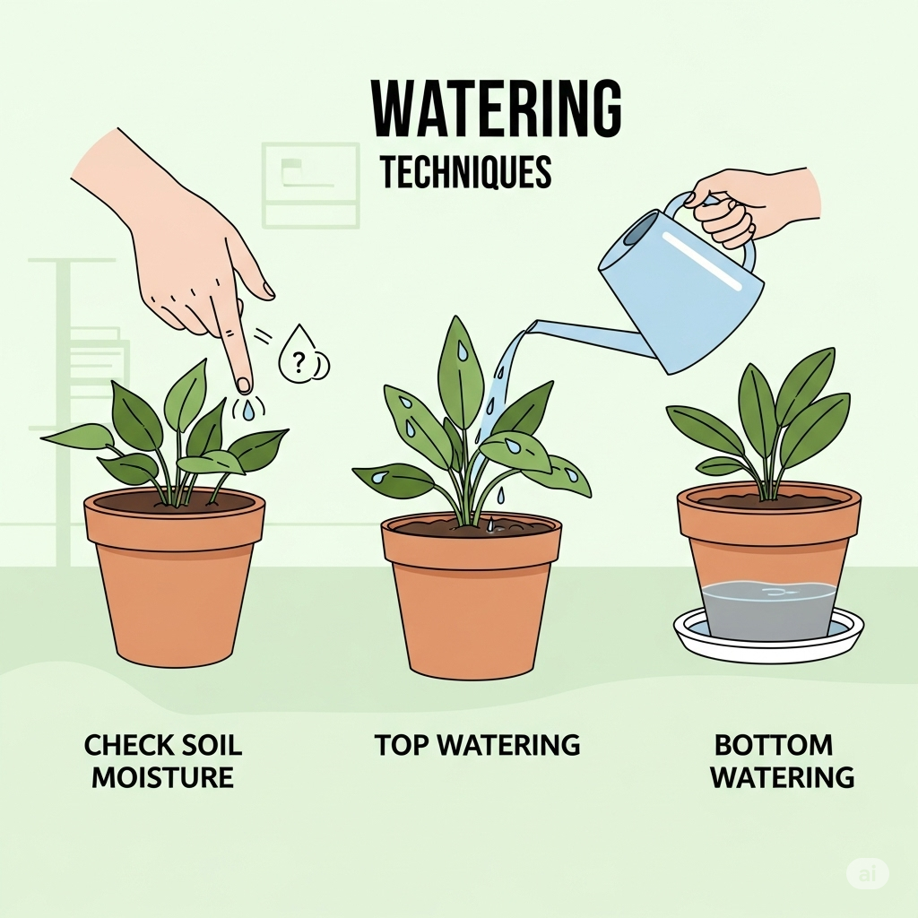 Em estufas ou grandes coleções, sistemas de gotejamento automatizados garantem consistência e economia de água.